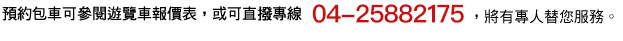 包車旅遊服務等等,承襲著『專業、誠信、積極』的經營理念,為您提供完善的大眾交通運輸服務。