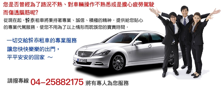 提供國內外高級轎車、成熟穩重經驗豐富的駕駛為您服務,使您備感尊榮,